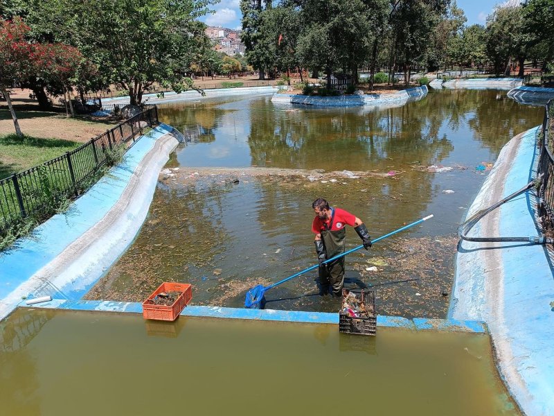 Kağıthane Belediyesi, Hasbahçe Mesire Alanında gölet temizliği çalışmalarını titizlikle gerçekleştirmeye devam ediyor.