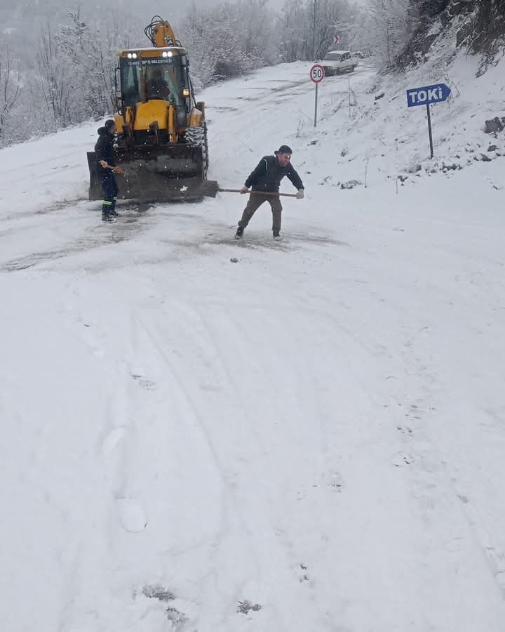Mesudiye Belediye Başkanı Cengiz Koçyiğit yaptığı açıklamada, "Ekiplerimiz sabahın erken saatlerinde kar ve buzlanma nedeniyle ilçemiz giriş çıkışını temizleyip tuzlama çalışması yaptı.
