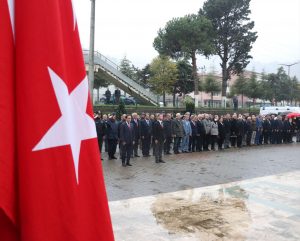 Mustafa Kemal Atatürk ve silah arkadaşları için düzenlenen tören saygı duruşu, İstiklal Marşı’nın okunması, çelenk sunumu, okunan şiirler ve yapılan konuşmalarla tamamlandı.