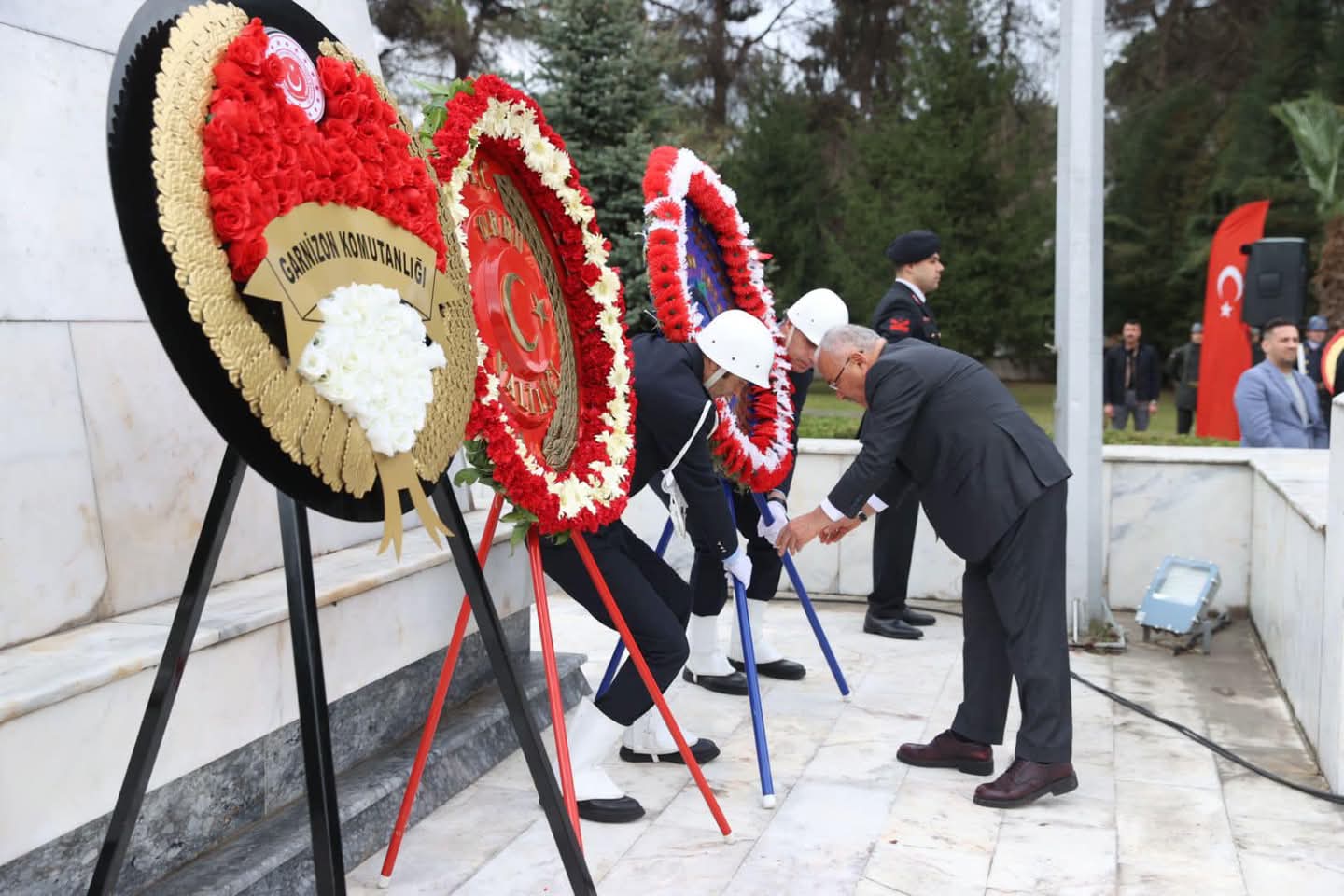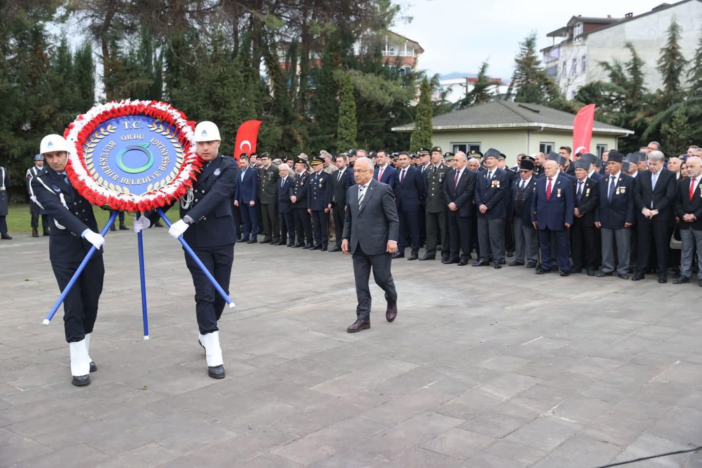 Eskipazar mevkiinde bulunan Ordu Şehitliği’ndeki törene katılan Başkan Güler, buradaki tören, çelenk sunma, saygı duruşunda bulunma ve İstiklal Marşı’mızın okunmasıyla başladı. Ardından, Kur’an-ı Kerim tilaveti yapıldı ve İl Müftümüz Dr. İsmail Çiçek tarafından şehitlerimiz için dualar okundu.